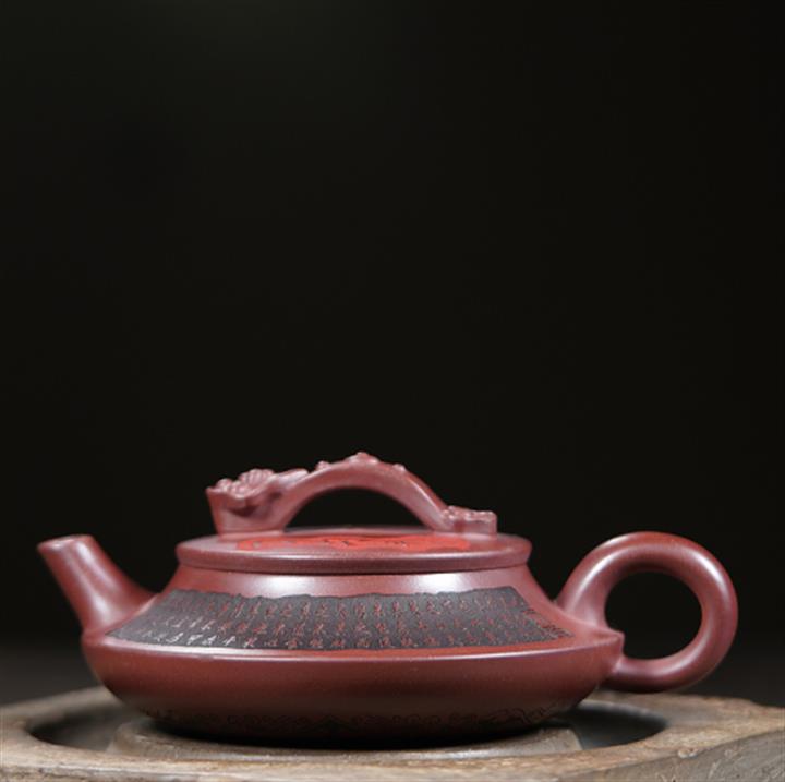 紫砂壺手工刻繪原礦大紅袍竹葉仿古POT1640