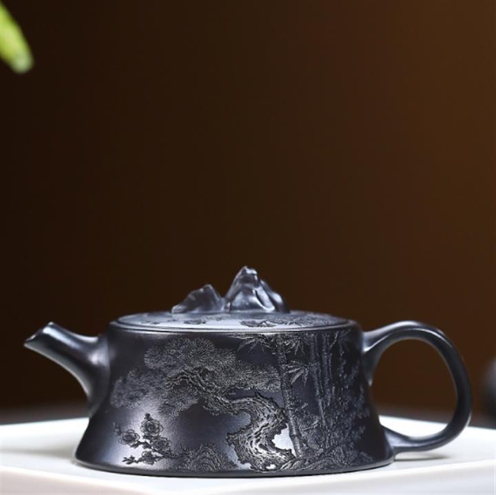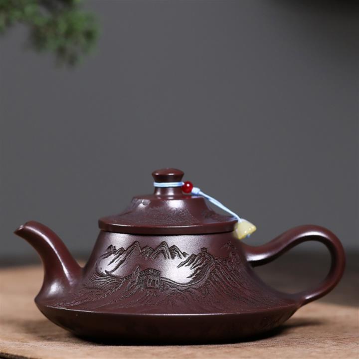 紫砂壺手工刻繪原礦大紅袍竹葉仿古POT1640