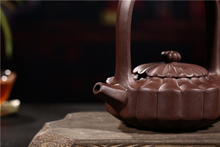 原礦紫泥手工菊菱提梁紫砂茶壺POT1032