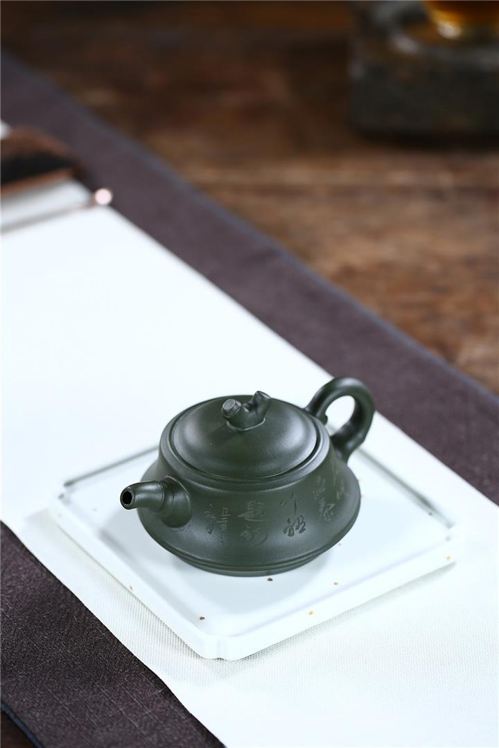 原礦手工綠泥紫砂壺斜竹壺POT1315