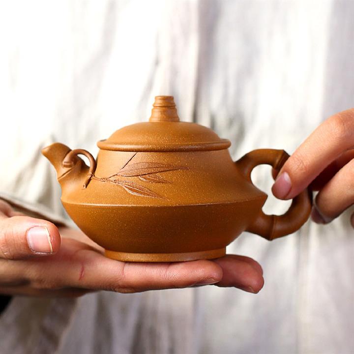 名家純手工原礦陳腐老段泥竹韻茶壺POT1318