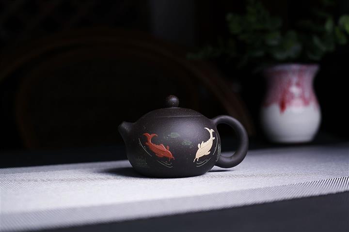 老紫泥牛氣沖天壺雙刀刻繪POT1396