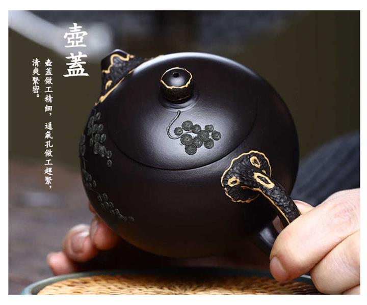 紫砂壺原礦大紅袍龍紋仿古茶壺POT1734