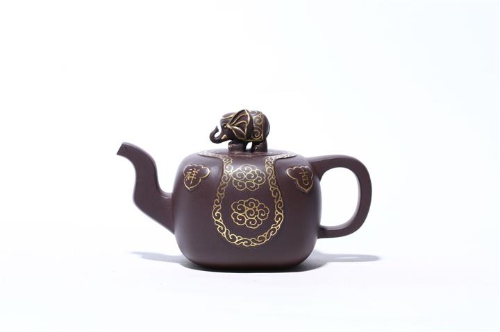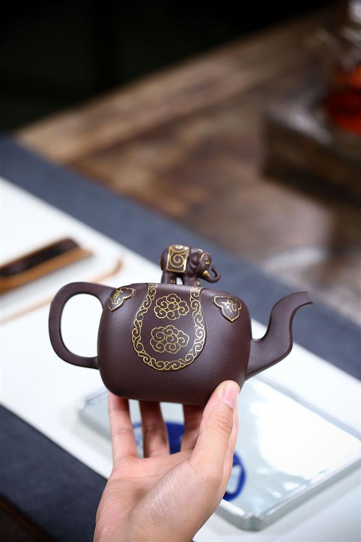 名家手工描金紫砂壺 原礦紫泥吉祥如意茶壺POT1805