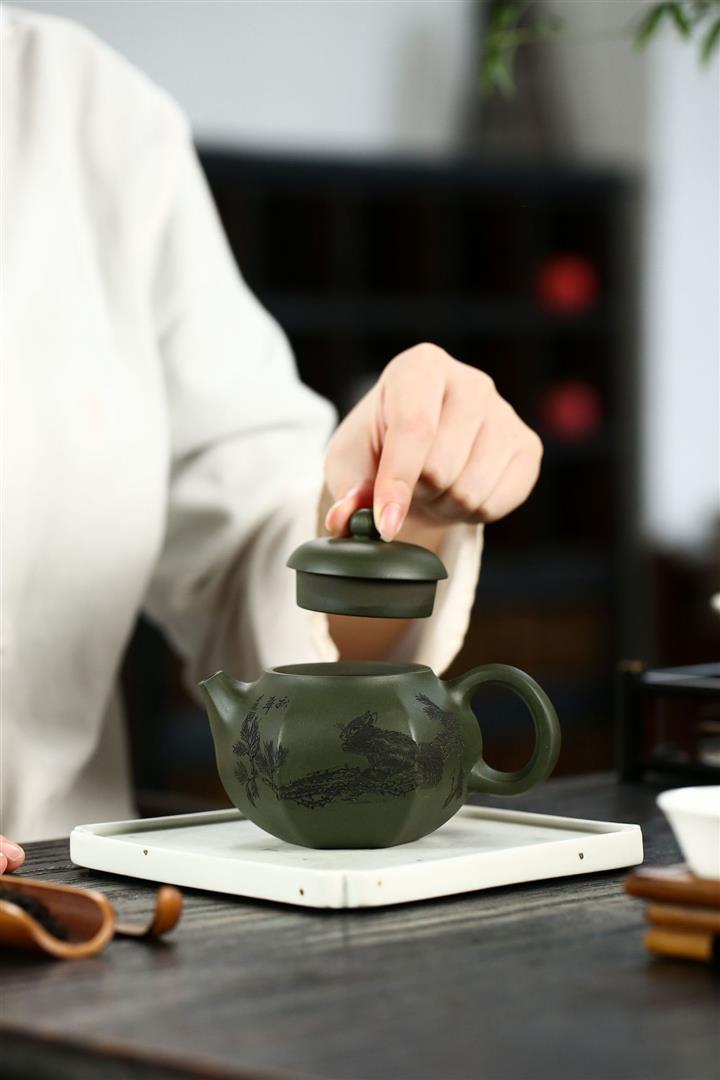 原礦綠泥泡茶壺名家六方文旦茶壺POT2024