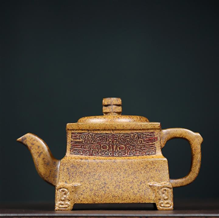 260cc原礦高溫柴燒龍骨金砂四方鼎足茶壺POT9105