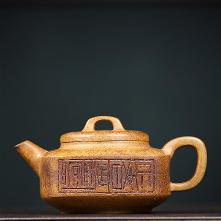 240cc原礦高溫柴燒龍骨金砂四方刻竹茶壺POT9103