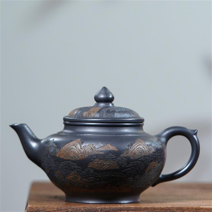 8260cc原礦玄鐵石黃竹報平安泡茶壺POT850