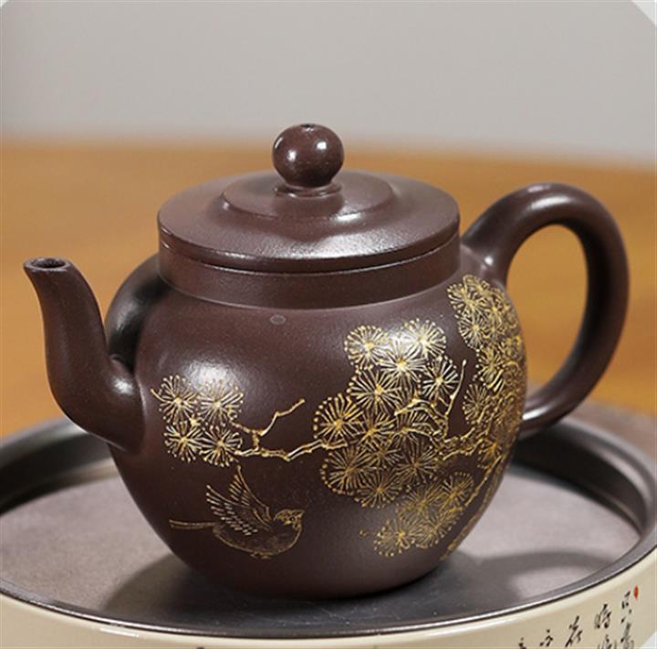 150cc原礦玄鐵石黃泥金玉滿堂茶壺POT9184
