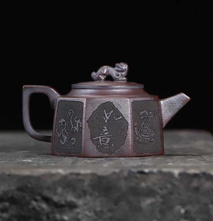 原礦古銅泥八方瑞獸紫砂壺POT5289