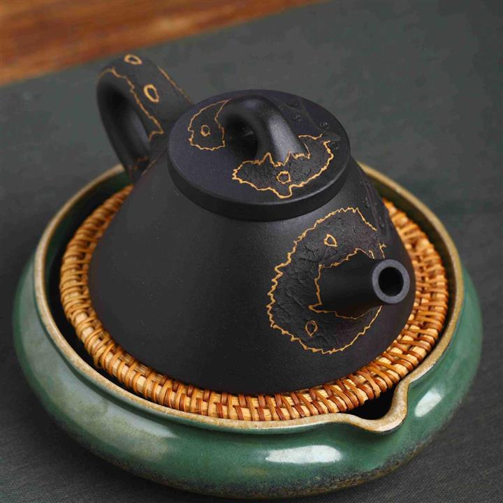 名家純手工原礦黑金砂松鶴延年井泉壺POT1854