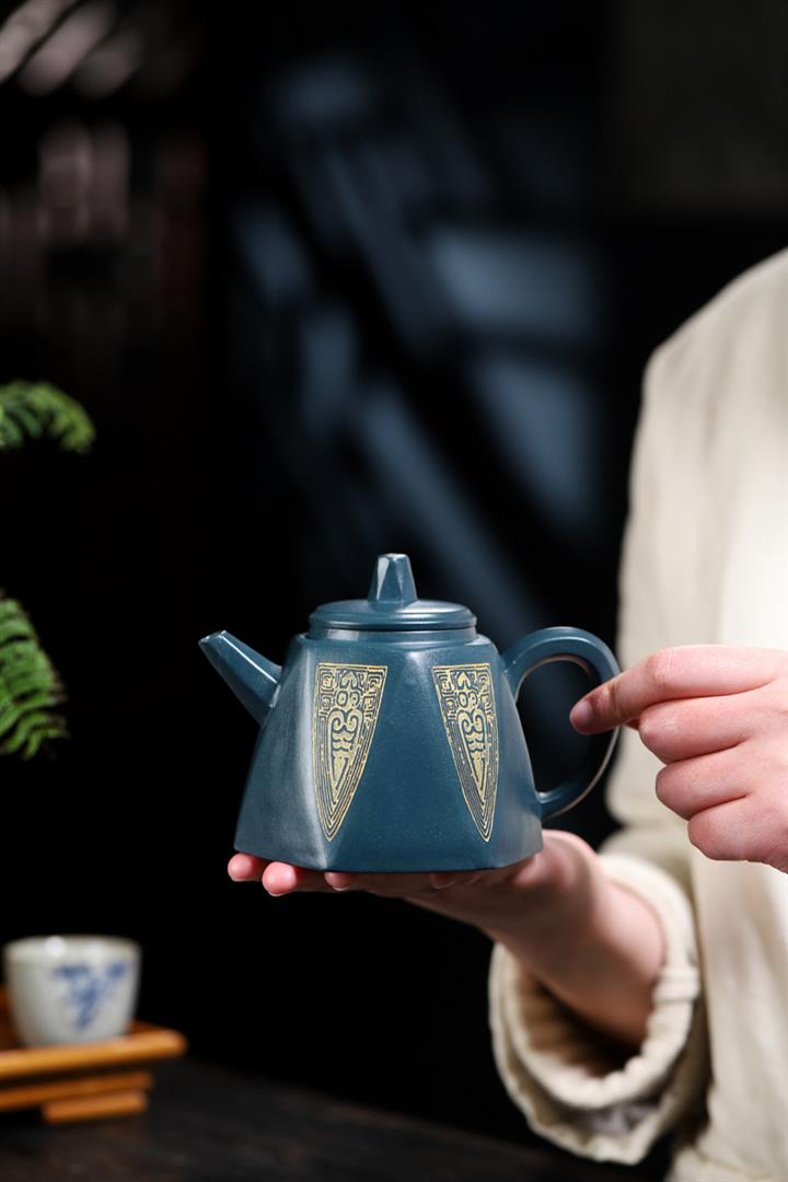 寅·天青泥古金鐘紫砂壺POT5995