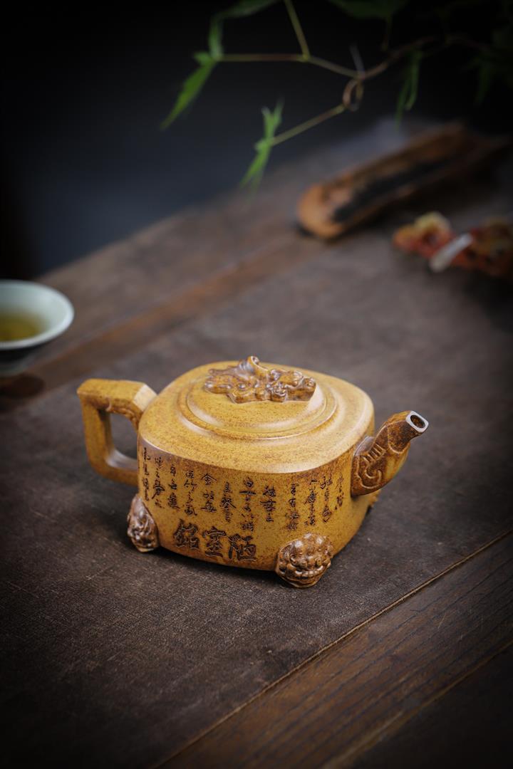 260cc原礦高溫柴燒龍骨金砂四方鼎足茶壺POT9105