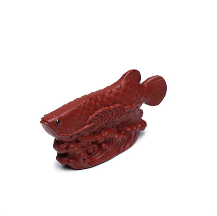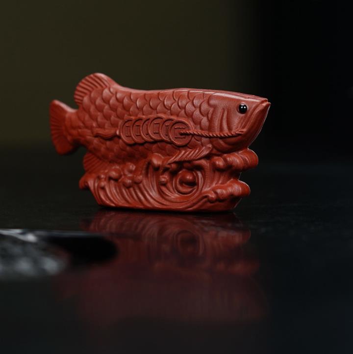 原礦朱泥金龍魚發財納福茶寵