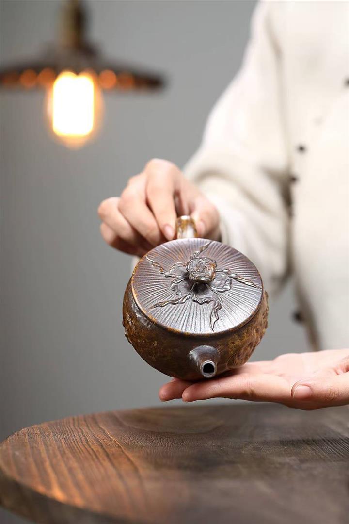原礦高溫柴燒黃金段隱龍靈芝漢瓦壺POT6576