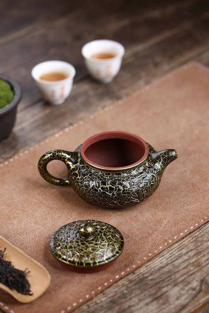原礦大紅袍手工蛇紋鎏金龍紋壺POT6775
