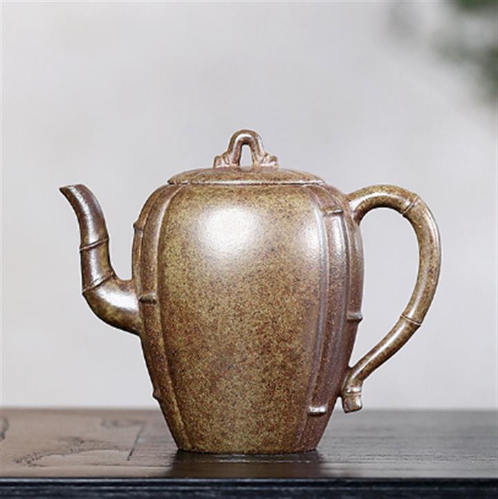 【泥料特點】砂土氣重,似淳實農民,日久使用,漸露鋒芒,養成變化甚大,溫潤莊重。線條優美自然,嘴把搭配協調,身桶配上細長的把搭配,更顯優生動……