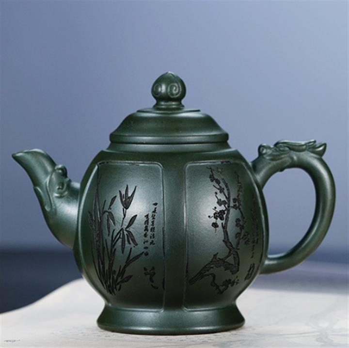 150cc原礦綠泥雙刀刻繪文心漢瓦茶壺POT9151