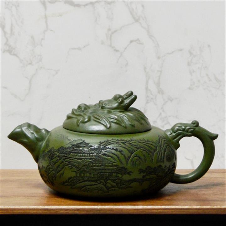 250cc原礦綠泥山水獨占鰲頭泡茶壺POT9156