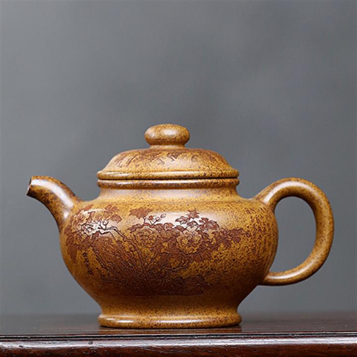 原礦玄鐵石黃刻繪覓香苑曲壺POT7592