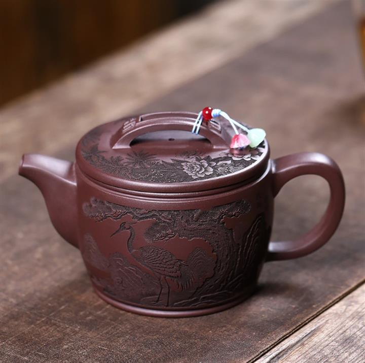 原礦紫泥仙鶴呈祥漢瓦茶壺POT7912