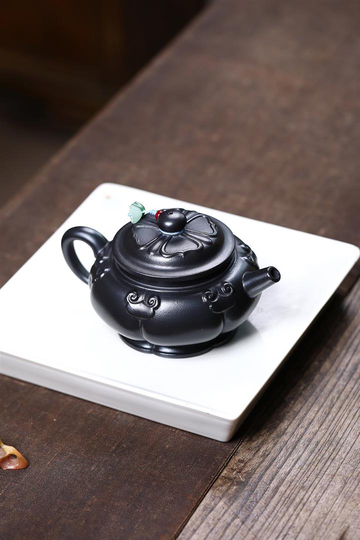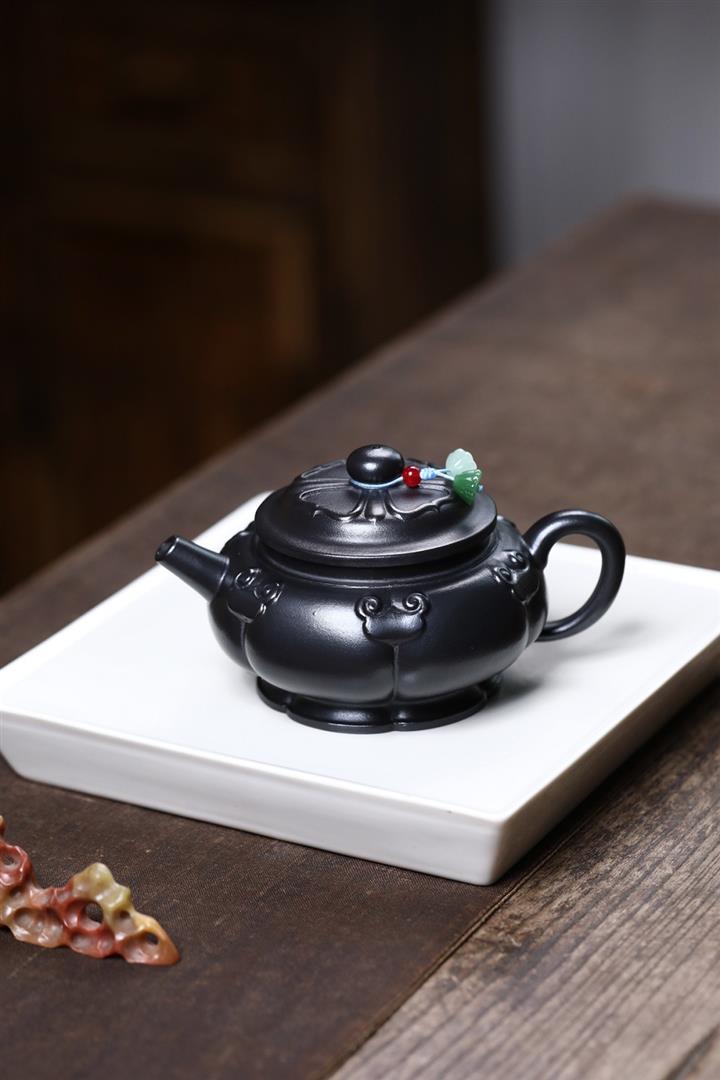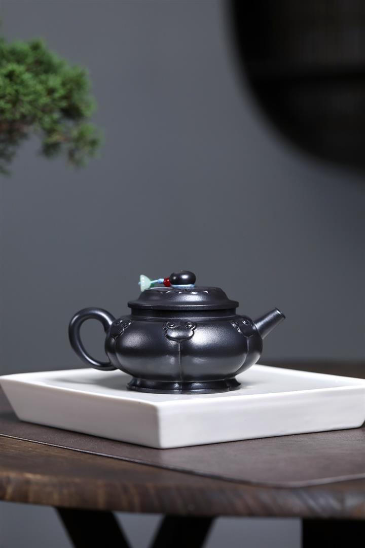 340cc原礦紫泥方骨鶴心牛蓋蓮子茶壺POT8735