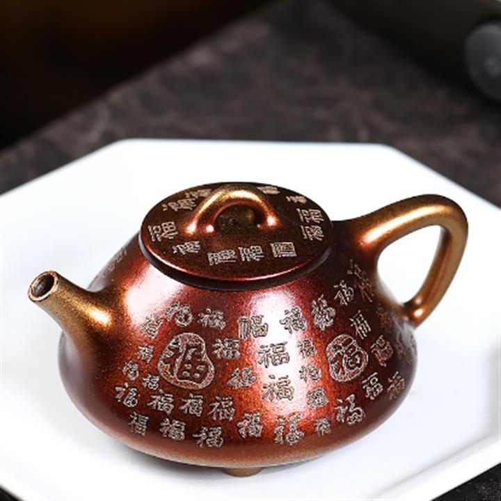 【泥料特點】砂土氣重,似淳實農民,日久使用,漸露鋒芒,養成變化,溫潤莊重。紫砂是壹種雙重氣孔結構的多孔性材質,氣孔微細,密度高。用紫砂壺沏茶,不失原味,且香不渙散,得茶之真香真味。紫砂使用越久,壺身色澤越發光亮照人,氣韻溫雅。紫砂壺長久使用器身會因撫摸擦拭,變得越發溫潤光澤。