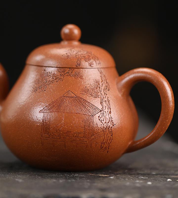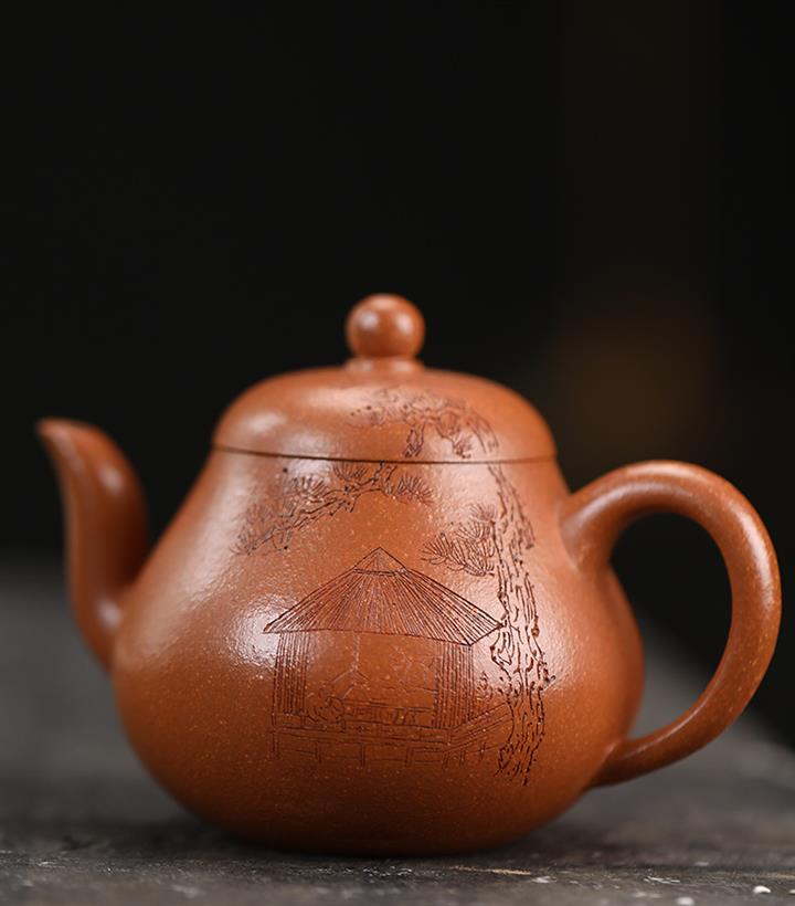 原礦墨綠泥如意山水漢瓦茶壺POT7577