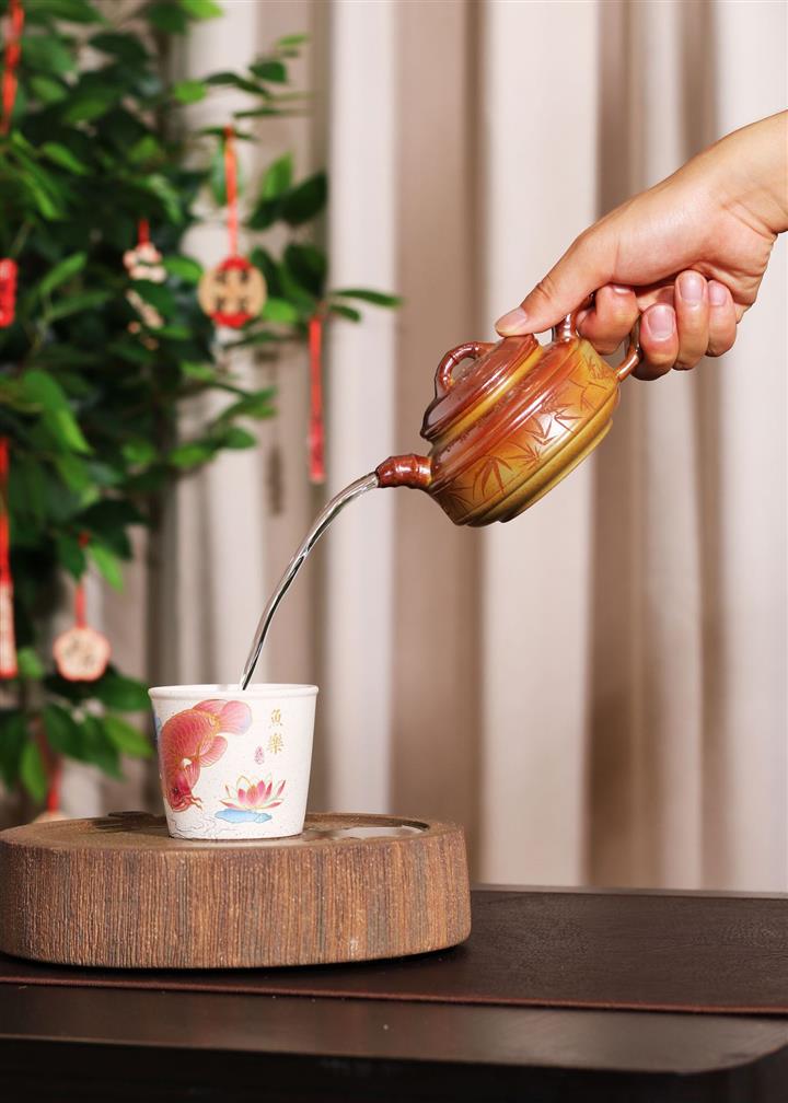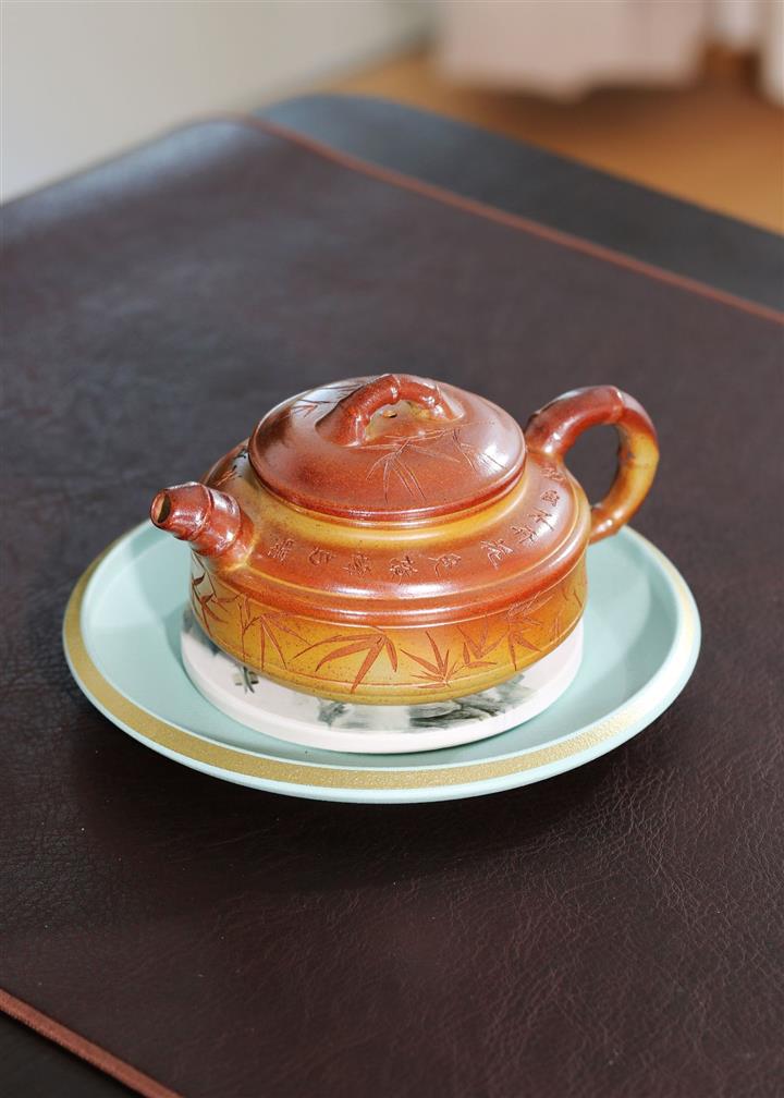 【泥料特點】砂土氣重,似淳實農民,日久使用,漸露鋒芒,養成變化,溫潤莊重。紫砂是壹種雙重氣孔結構的多孔性材質,氣孔微細,密度高。用紫砂壺沏茶,不失原味,且香不渙散,得茶之真香真味。紫砂使用越久,壺身色澤越發光亮照人,氣韻溫雅。紫砂壺長久使用器身會因撫摸擦拭,變得越發溫潤光澤。