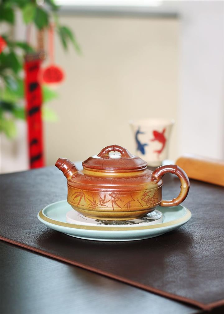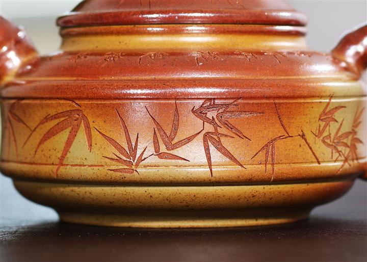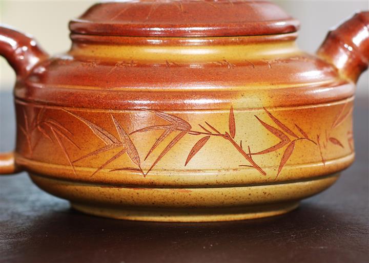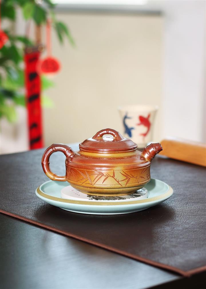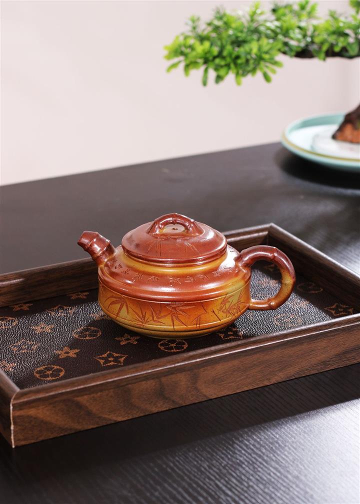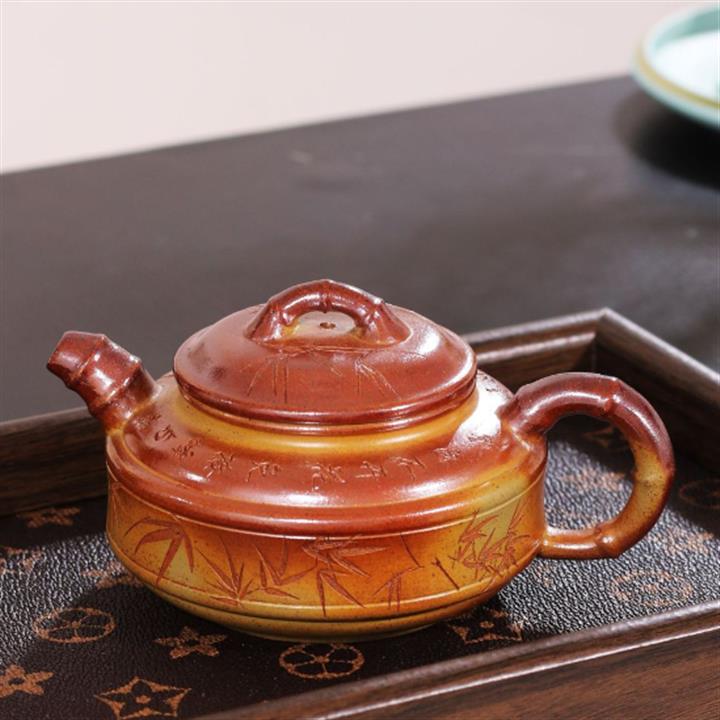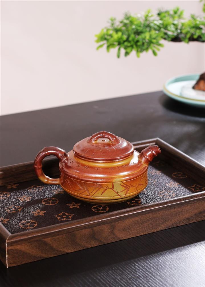 240cc段泥赤焰火雲燒雙線竹鼓茶壺POT8203