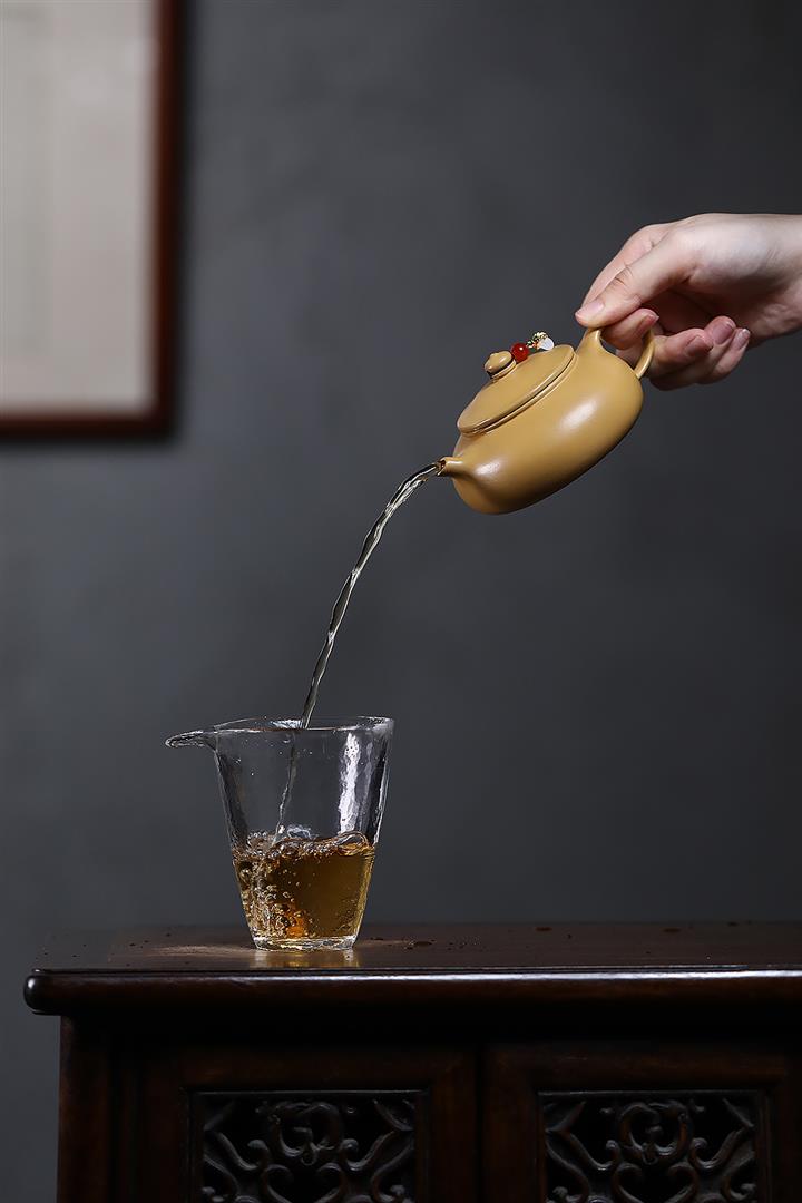 【泥料特點】砂土氣重,似淳實農民,日久使用,漸露鋒芒,養成變化,溫潤莊重。紫砂是壹種雙重氣孔結構的多孔性材質,氣孔微細,密度高。用紫砂壺沏茶,不失原味,且香不渙散,得茶之真香真味。紫砂使用越久,壺身色澤越發光亮照人,氣韻溫雅。紫砂壺長久使用器身會因撫摸擦拭,變得越發溫潤光澤。