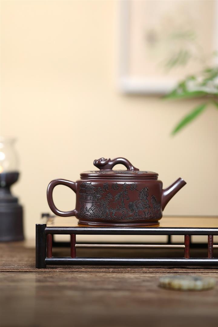 【作品介紹】此款壺形線條流暢,壺把,壺嘴,壺身壹氣呵成栩栩如生,是收藏把玩的好壺,泥料色澤古樸典雅,日久使用,漸露鋒芒,養成變化快,溫潤莊重,用其泡茶,使用的年代久,壺身就溫潤,泡出來的茶湯也就醇郁芳馨。