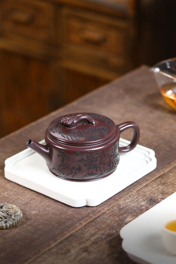 【泥料特點】砂土氣重,似淳實農民,日久使用,漸露鋒芒,養成變化,溫潤莊重。紫砂是壹種雙重氣孔結構的多孔性材質,氣孔微細,密度高。用紫砂壺沏茶,不失原味,且香不渙散,得茶之真香真味。紫砂使用越久,壺身色澤越發光亮照人,氣韻溫雅。紫砂壺長久使用器身會因撫摸擦拭,變得越發溫潤光澤。