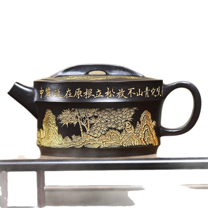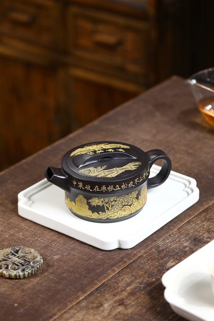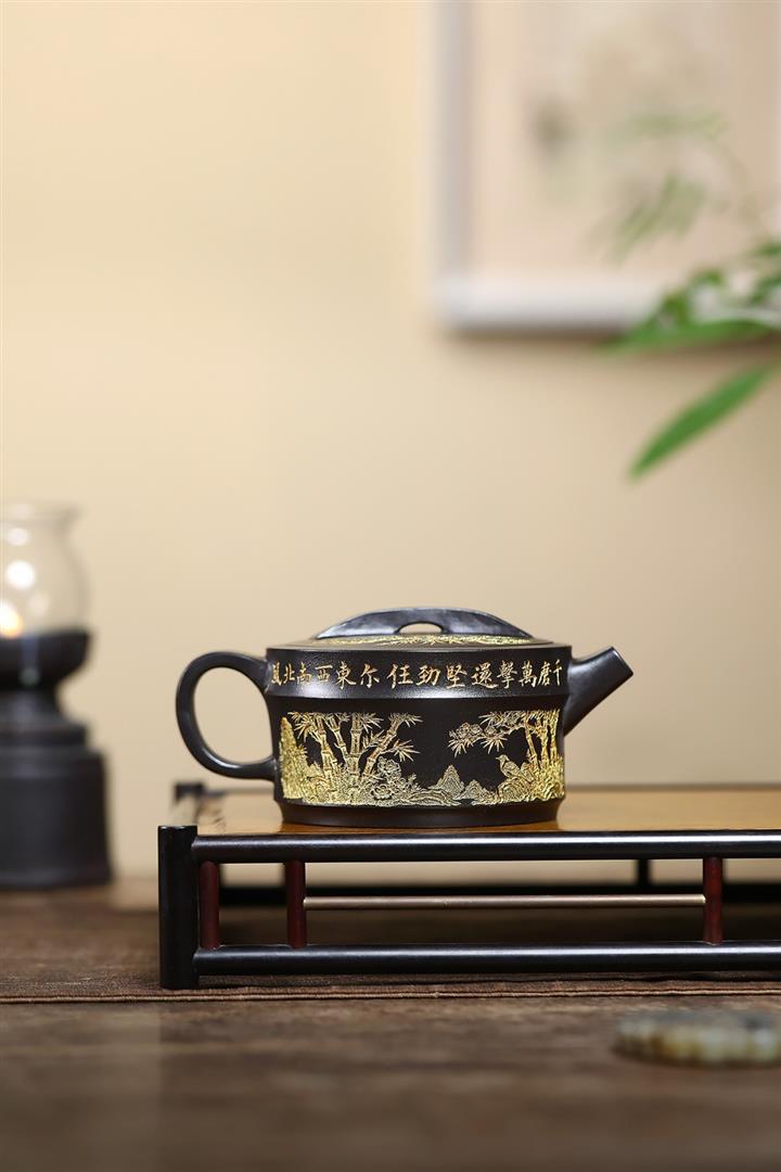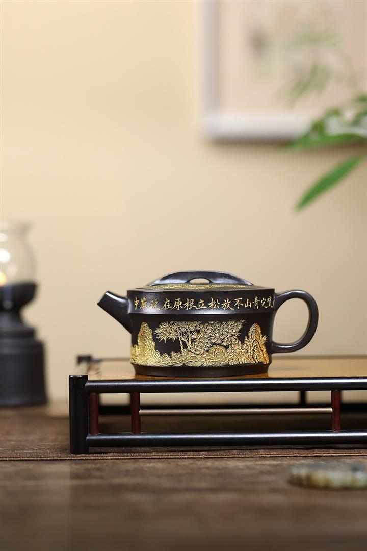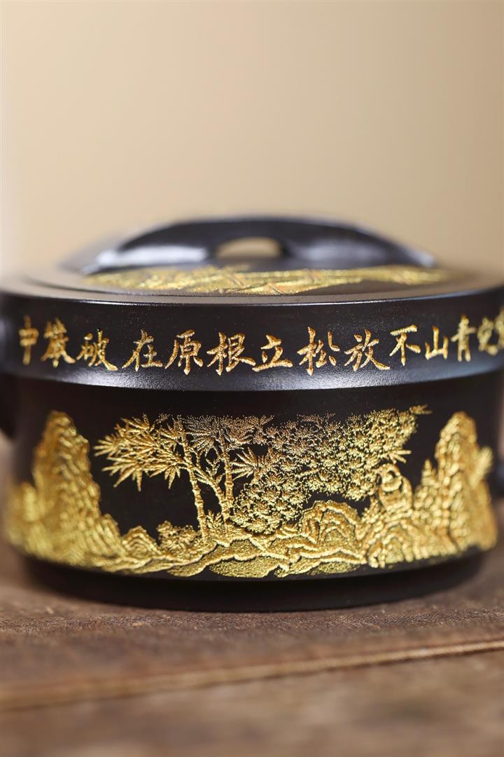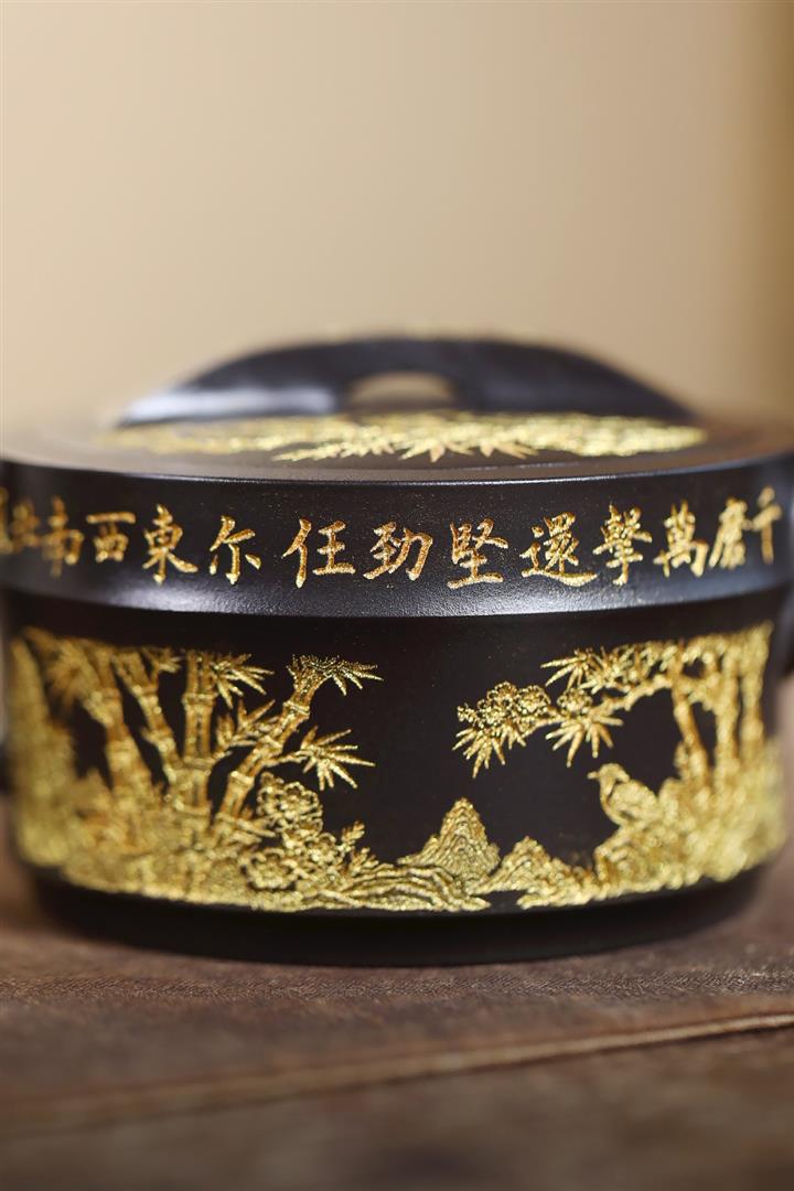 300cc原礦石黃泥金篆竹韻瓦當壺POT8249