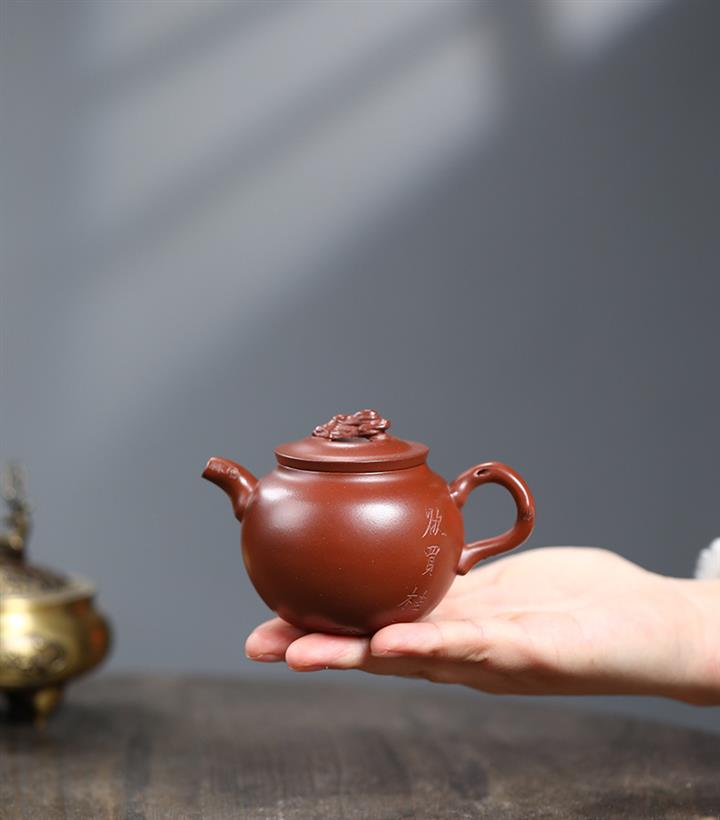 【泥料特點】砂土氣重,似淳實農民,日久使用,漸露鋒芒,養成變化,溫潤莊重。紫砂是壹種雙重氣孔結構的多孔性材質,氣孔微細,密度高。用紫砂壺沏茶,不失原味,且香不渙散,得茶之真香真味。紫砂使用越久,壺身色澤越發光亮照人,氣韻溫雅。紫砂壺長久使用器身會因撫摸擦拭,變得越發溫潤光澤。