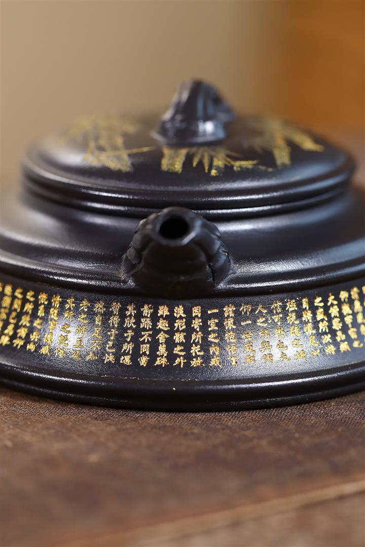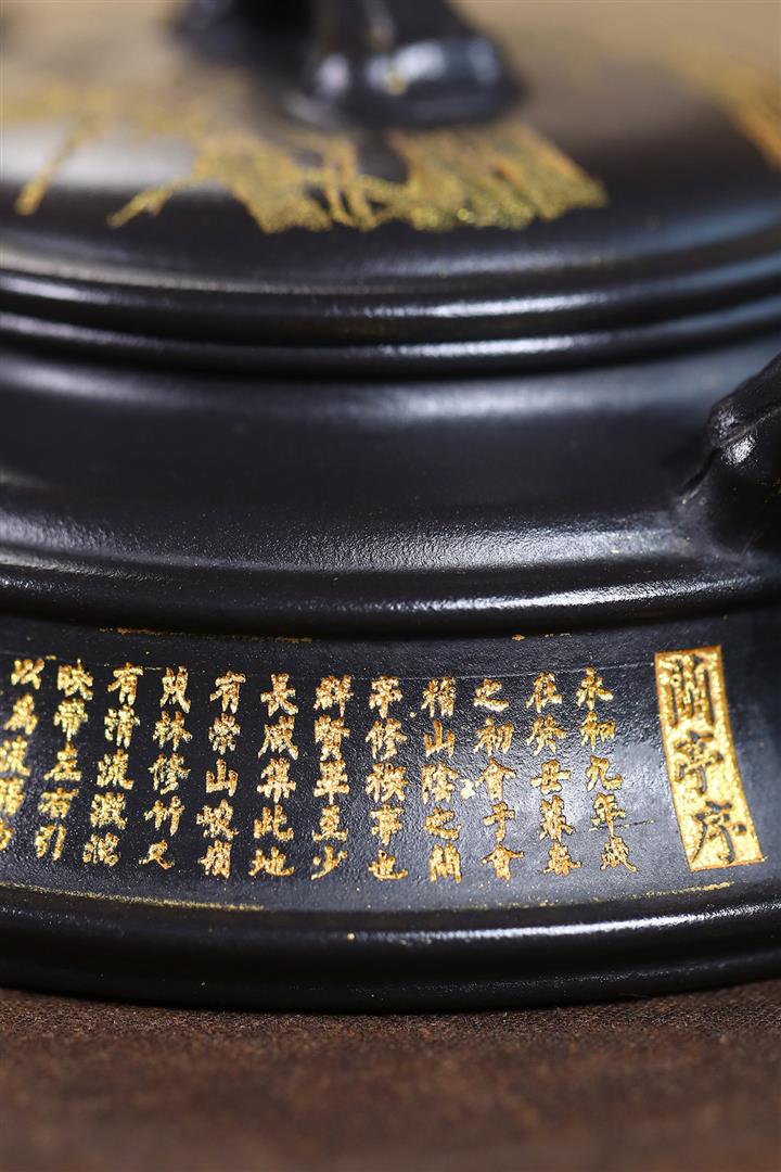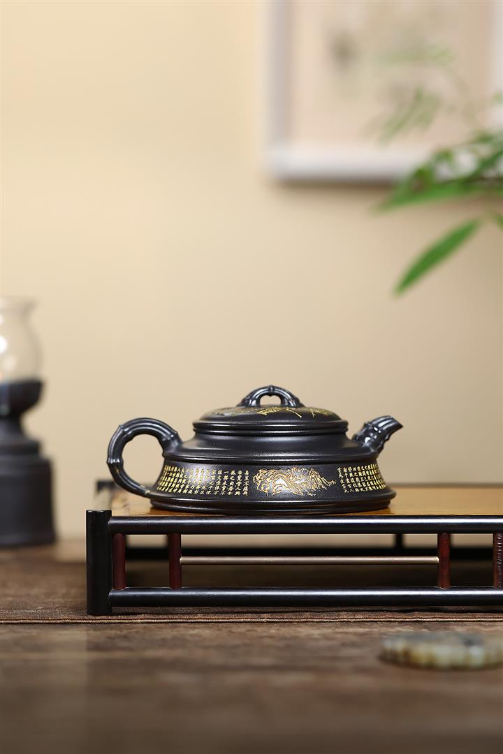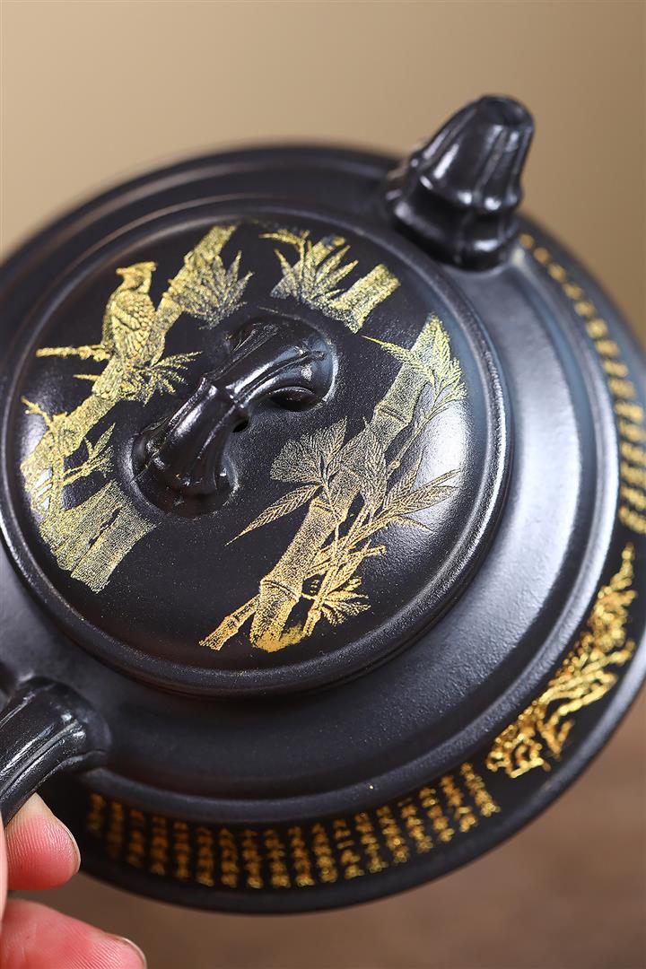 240cc玄鐵石黃雙線竹段蘭亭序集茶壺POT8272