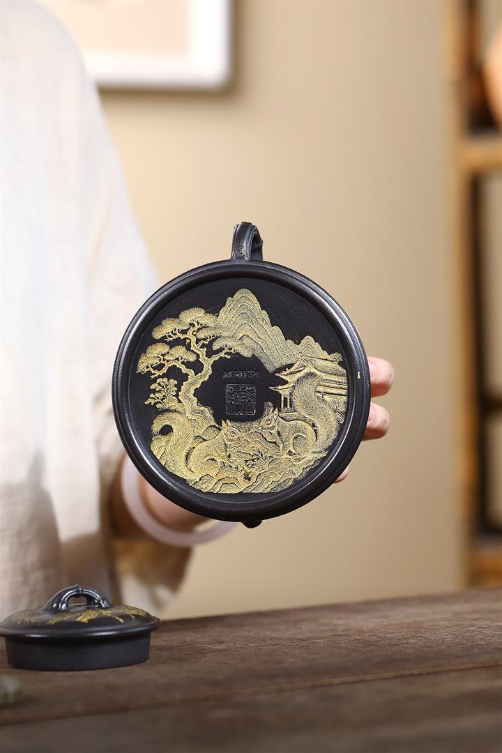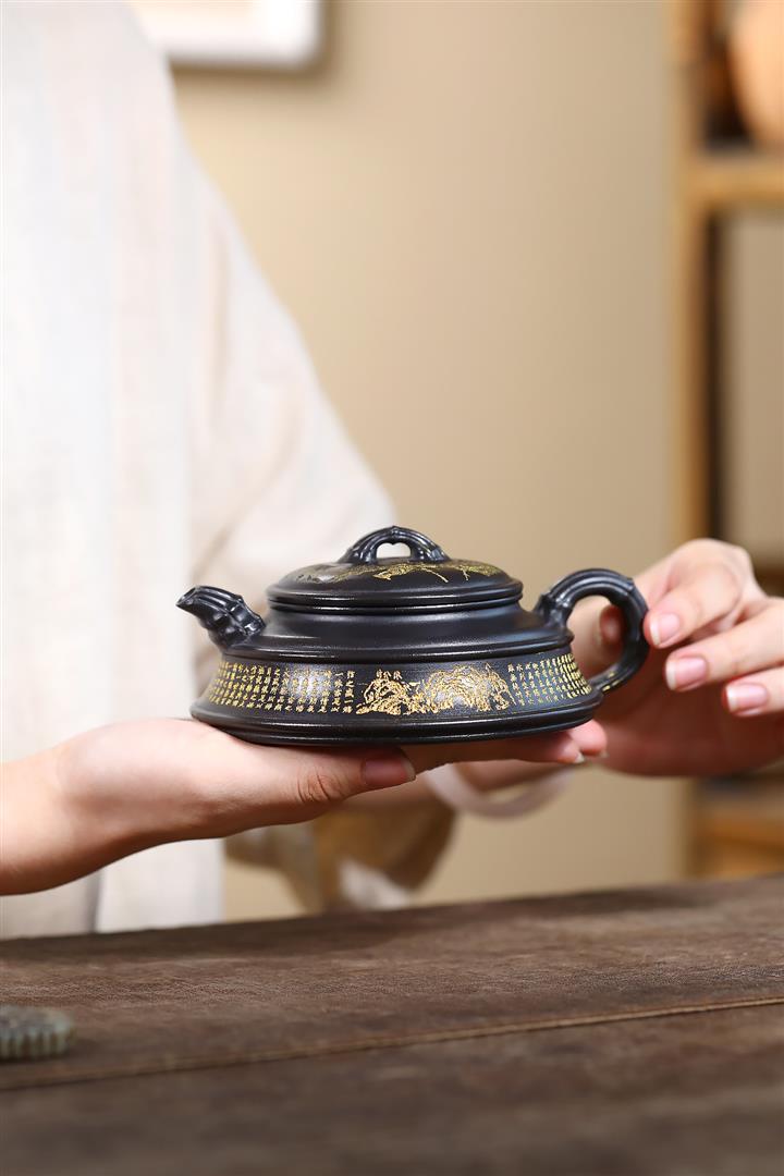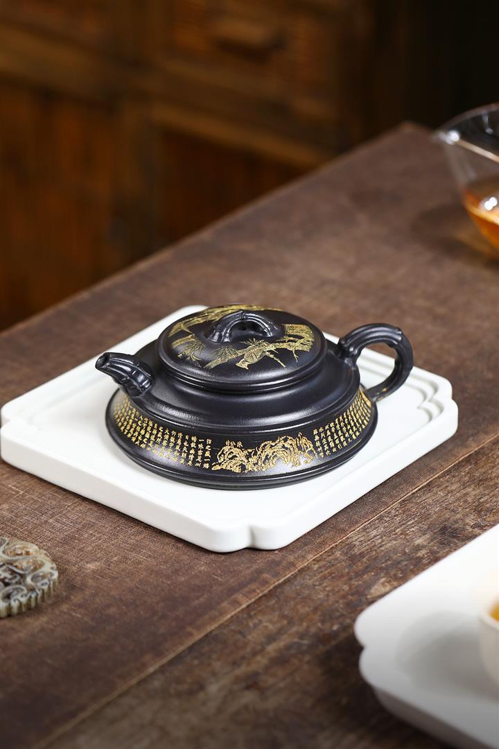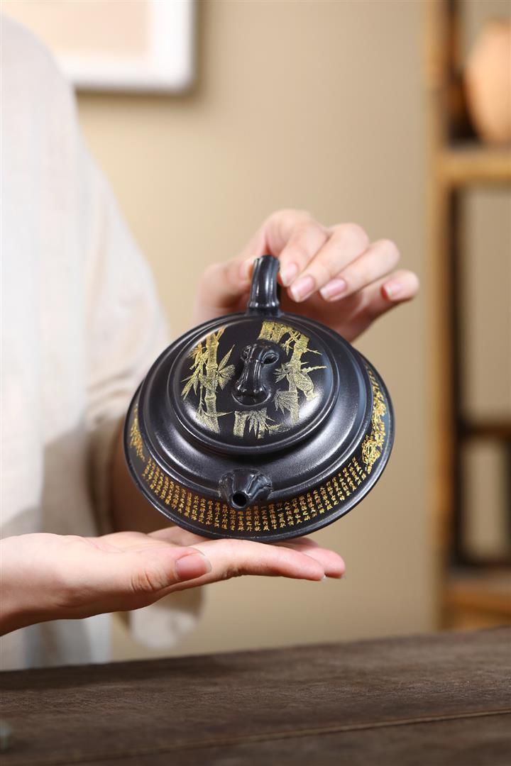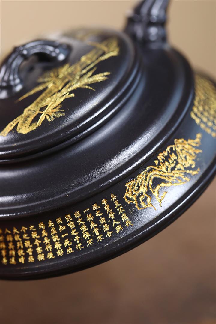 240cc玄鐵石黃雙線竹段蘭亭序集茶壺POT8272