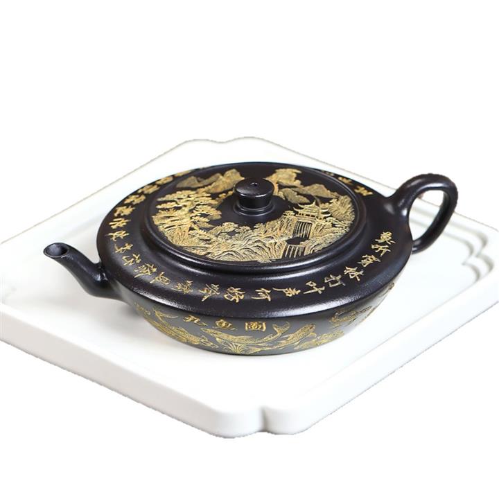 200cc原礦石黃滿身刻繪虛扁扁晨茶壺POT8274