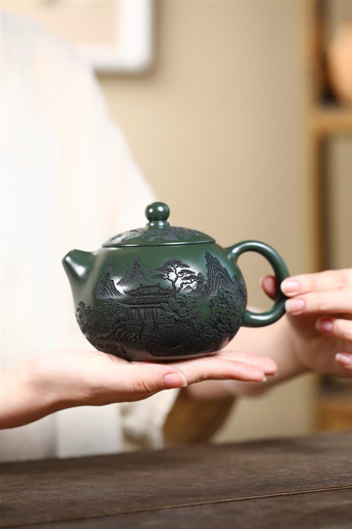 500cc原礦翡翠綠泥荷韻西施茶壺POT8280