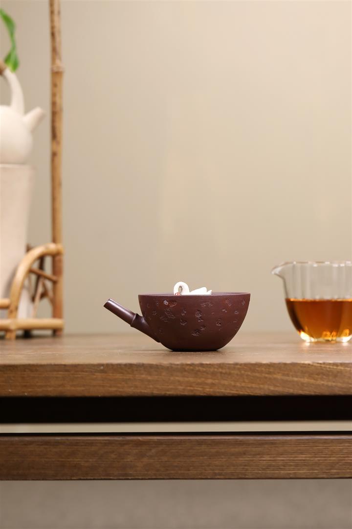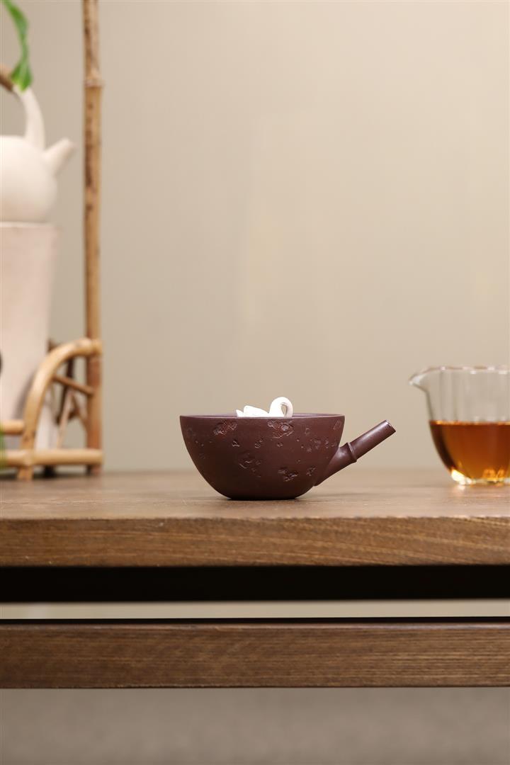 【泥料特點】砂土氣重,似淳實農民,日久使用,漸露鋒芒,養成變化,溫潤莊重。紫砂是壹種雙重氣孔結構的多孔性材質,氣孔微細,密度高。用紫砂壺沏茶,不失原味,且香不渙散,得茶之真香真味。紫砂使用越久,壺身色澤越發光亮照人,氣韻溫雅。紫砂壺長久使用器身會因撫摸擦拭,變得越發溫潤光澤。