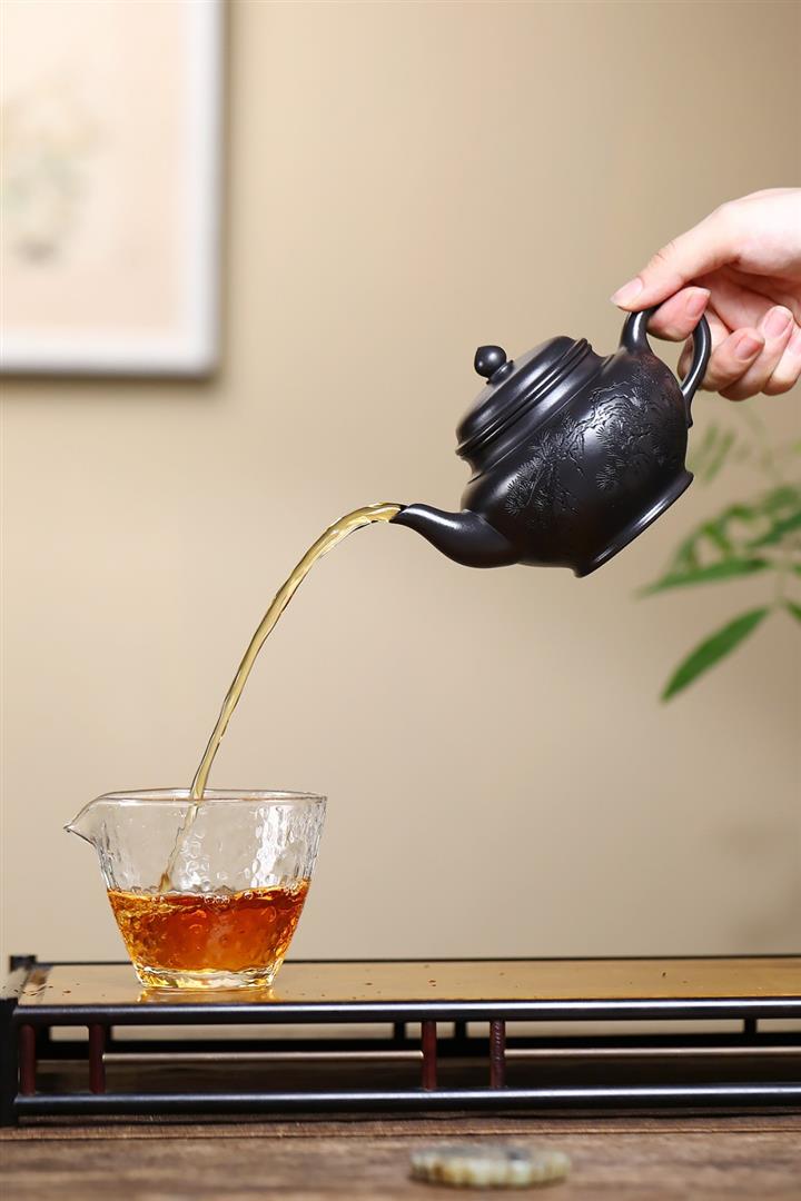 【泥料特點】砂土氣重,似淳實農民,日久使用,漸露鋒芒,養成變化,溫潤莊重。紫砂是壹種雙重氣孔結構的多孔性材質,氣孔微細,密度高。用紫砂壺沏茶,不失原味,且香不渙散,得茶之真香真味。紫砂使用越久,壺身色澤越發光亮照人,氣韻溫雅。紫砂壺長久使用器身會因撫摸擦拭,變得越發溫潤光澤。