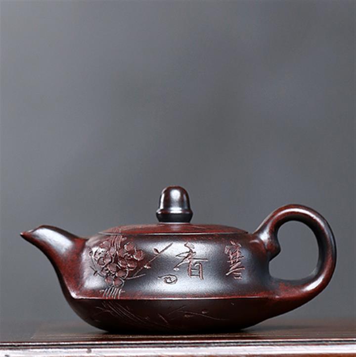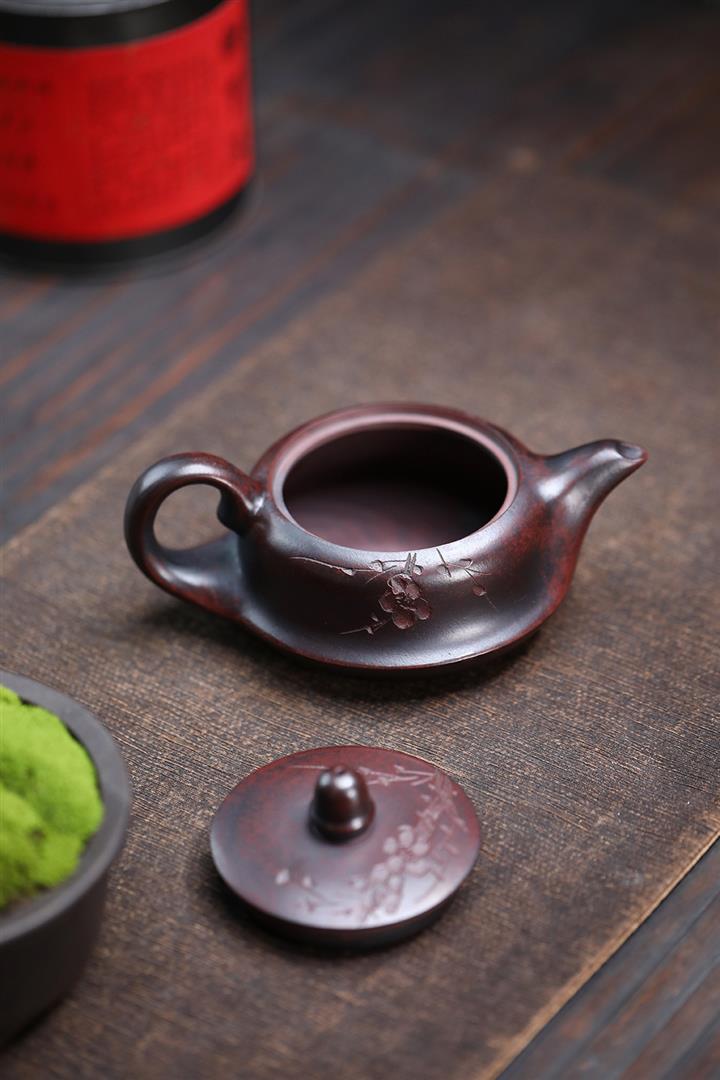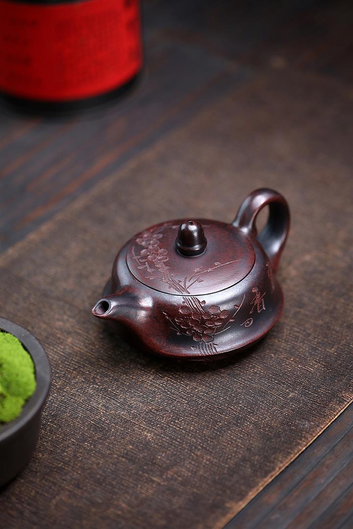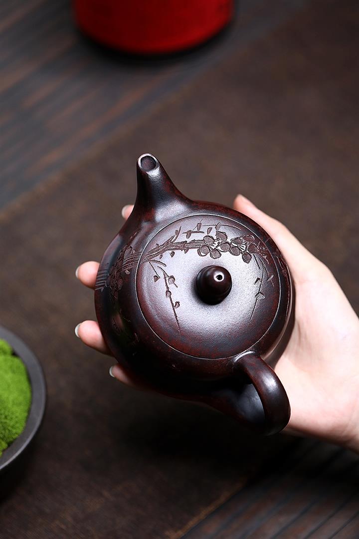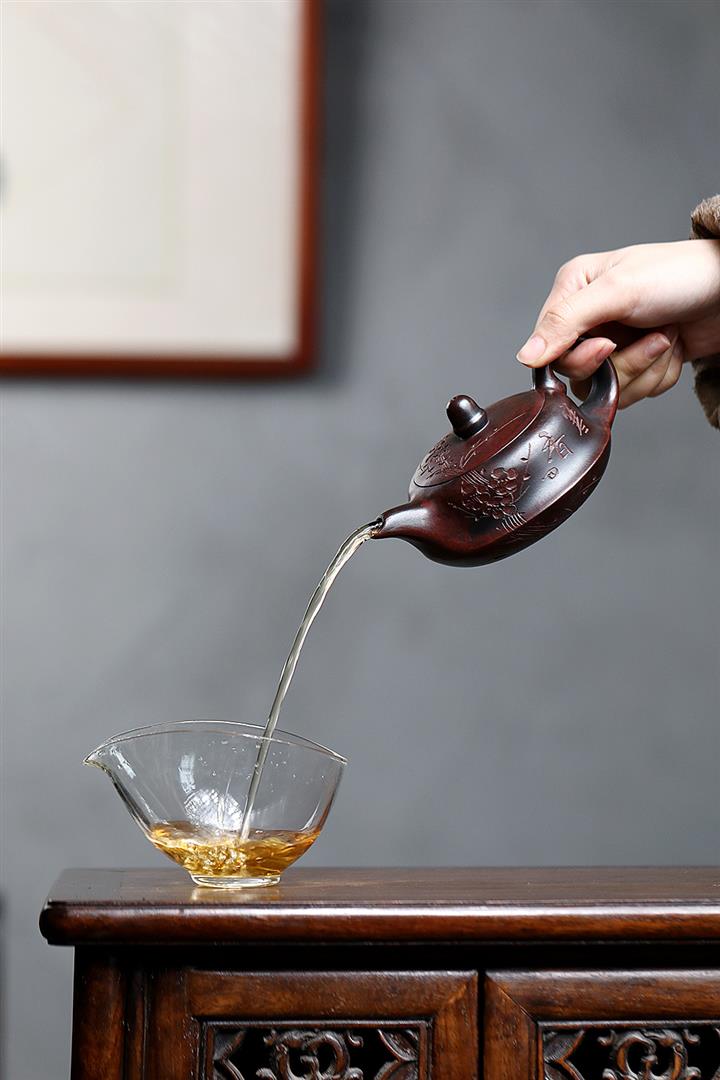 【泥料特點】砂土氣重,似淳實農民,日久使用,漸露鋒芒,養成變化,溫潤莊重。紫砂是壹種雙重氣孔結構的多孔性材質,氣孔微細,密度高。用紫砂壺沏茶,不失原味,且香不渙散,得茶之真香真味。紫砂使用越久,壺身色澤越發光亮照人,氣韻溫雅。紫砂壺長久使用器身會因撫摸擦拭,變得越發溫潤光澤。