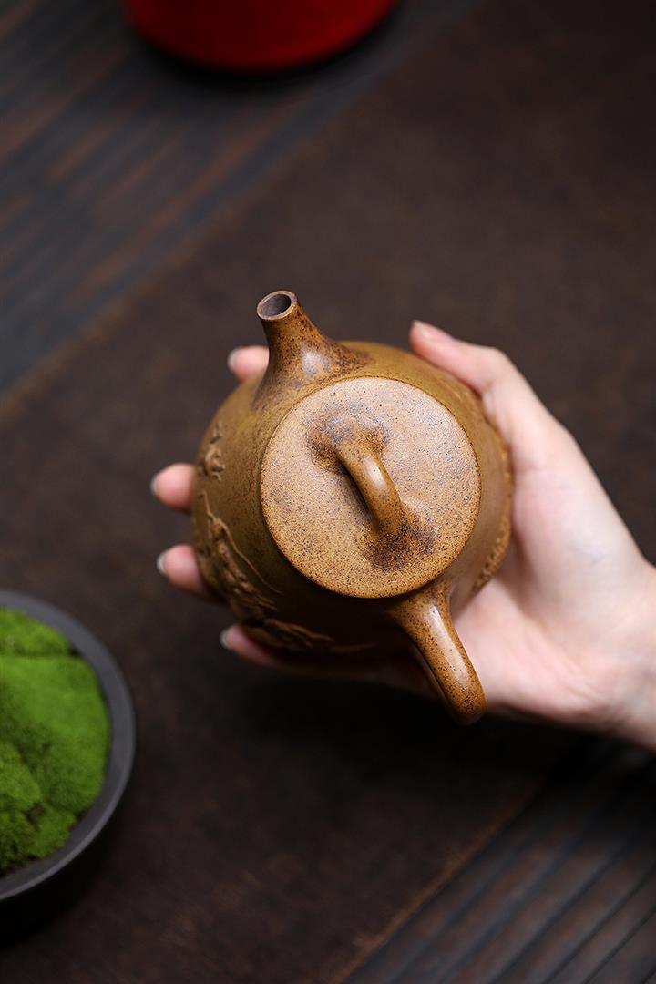【作品介紹】此款壺形線條流暢,壺把,壺嘴,壺身壹氣呵成栩栩如生,是收藏把玩的好壺,泥料色澤古樸典雅,日久使用,漸露鋒芒,養成變化快,溫潤莊重,用其泡茶,使用的年代久,壺身就溫潤,泡出來的茶湯也就醇郁芳馨。