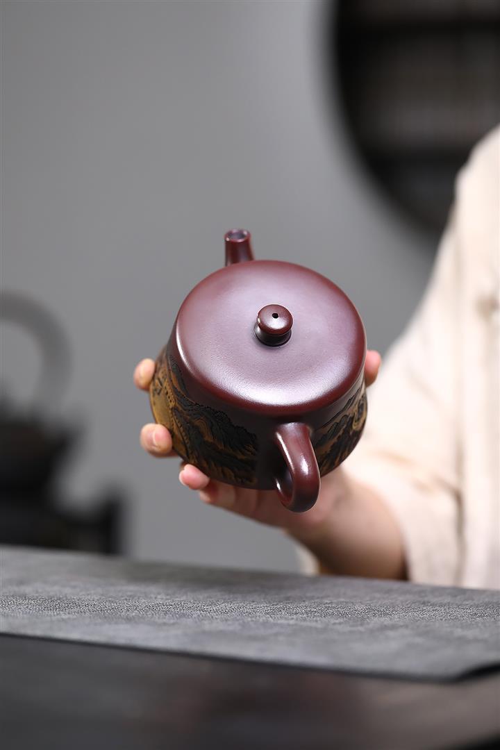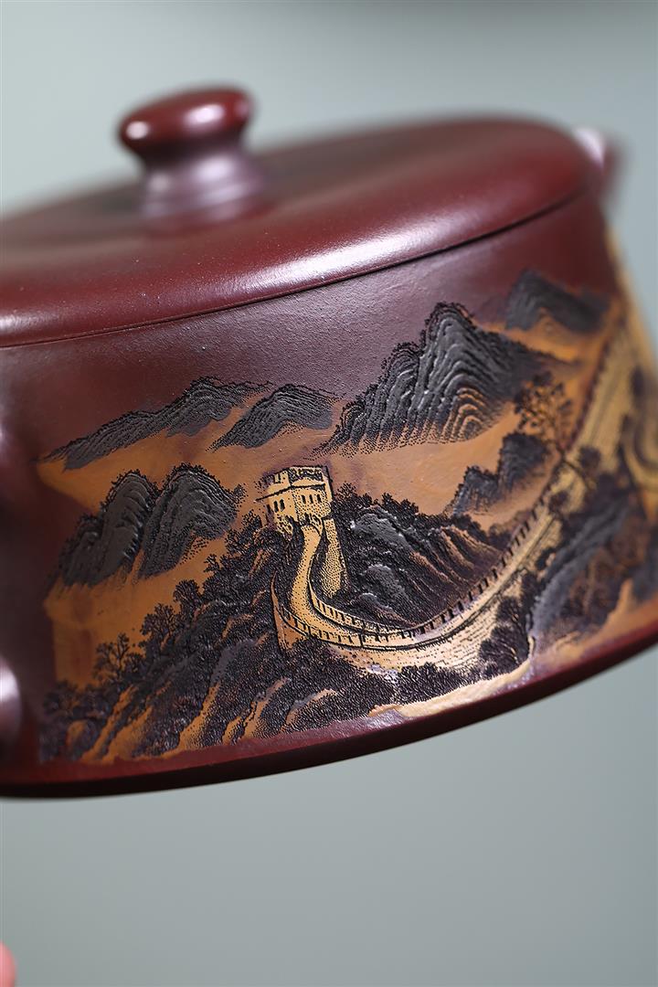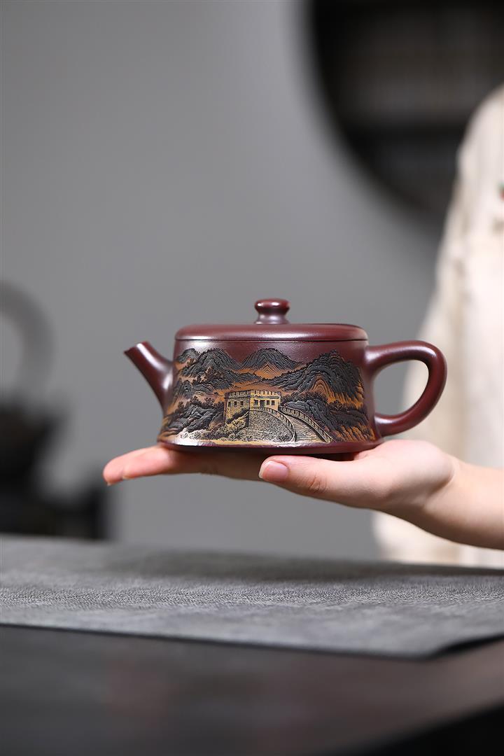 190cc原礦紫泥滿刻萬裏長城茶壺POT8310