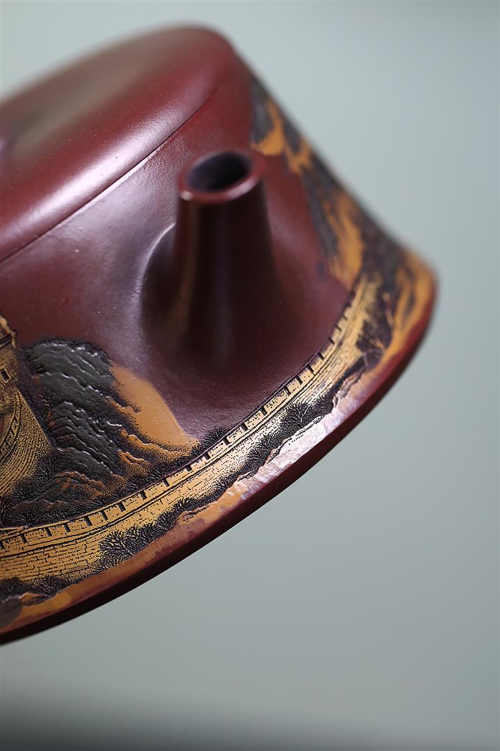原礦古銅烏泥菱花周盤茶壺POT6991