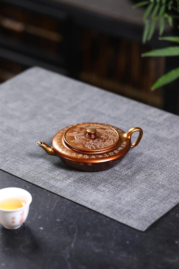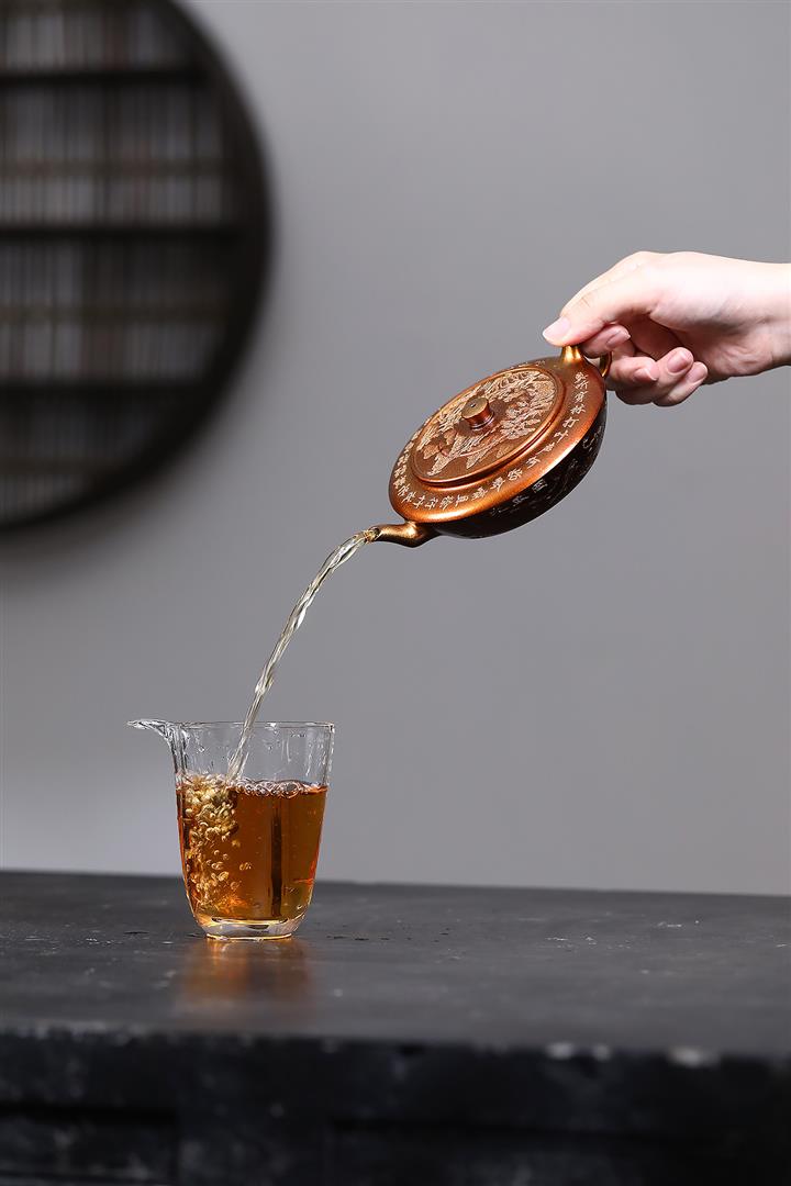【泥料特點】砂土氣重,似淳實農民,日久使用,漸露鋒芒,養成變化,溫潤莊重。紫砂是壹種雙重氣孔結構的多孔性材質,氣孔微細,密度高。用紫砂壺沏茶,不失原味,且香不渙散,得茶之真香真味。紫砂使用越久,壺身色澤越發光亮照人,氣韻溫雅。紫砂壺長久使用器身會因撫摸擦拭,變得越發溫潤光澤。