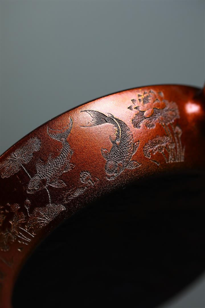 200cc段泥 貝殼火焰燒九魚虛扁泡茶壺POT8311