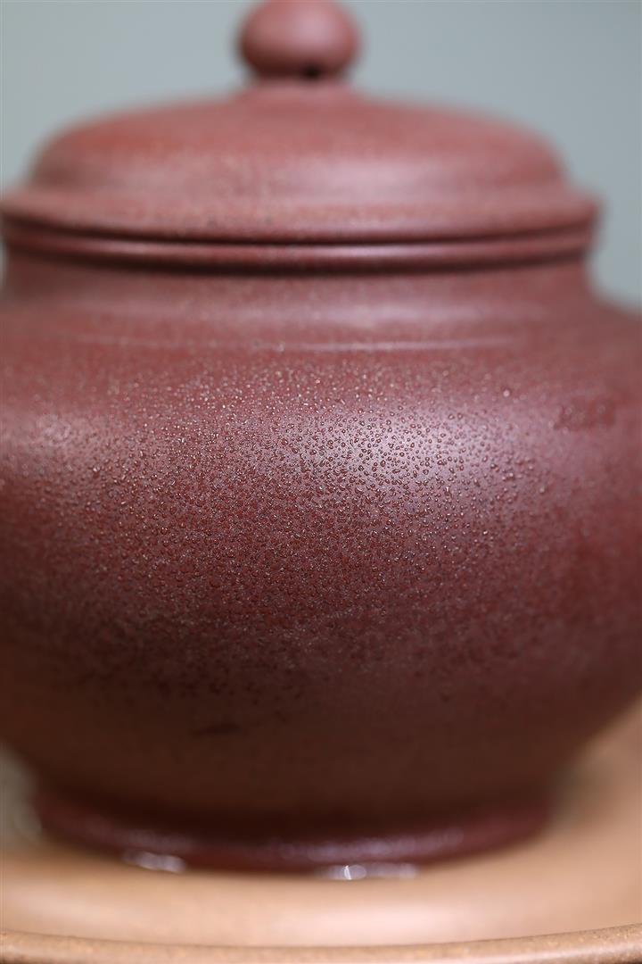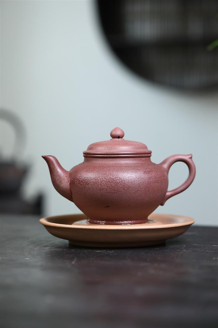 【泥料特點】砂土氣重,似淳實農民,日久使用,漸露鋒芒,養成變化,溫潤莊重。紫砂是壹種雙重氣孔結構的多孔性材質,氣孔微細,密度高。用紫砂壺沏茶,不失原味,且香不渙散,得茶之真香真味。紫砂使用越久,壺身色澤越發光亮照人,氣韻溫雅。紫砂壺長久使用器身會因撫摸擦拭,變得越發溫潤光澤。