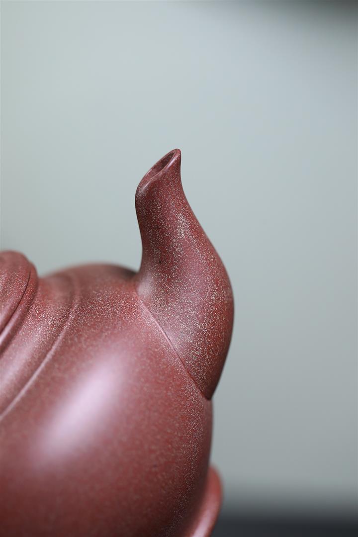 【作品介紹】此款壺形線條流暢,壺把,壺嘴,壺身壹氣呵成栩栩如生,是收藏把玩的好壺,泥料色澤古樸典雅,日久使用,漸露鋒芒,養成變化快,溫潤莊重,用其泡茶,使用的年代久,壺身就溫潤,泡出來的茶湯也就醇郁芳馨。