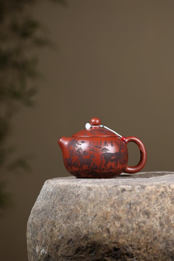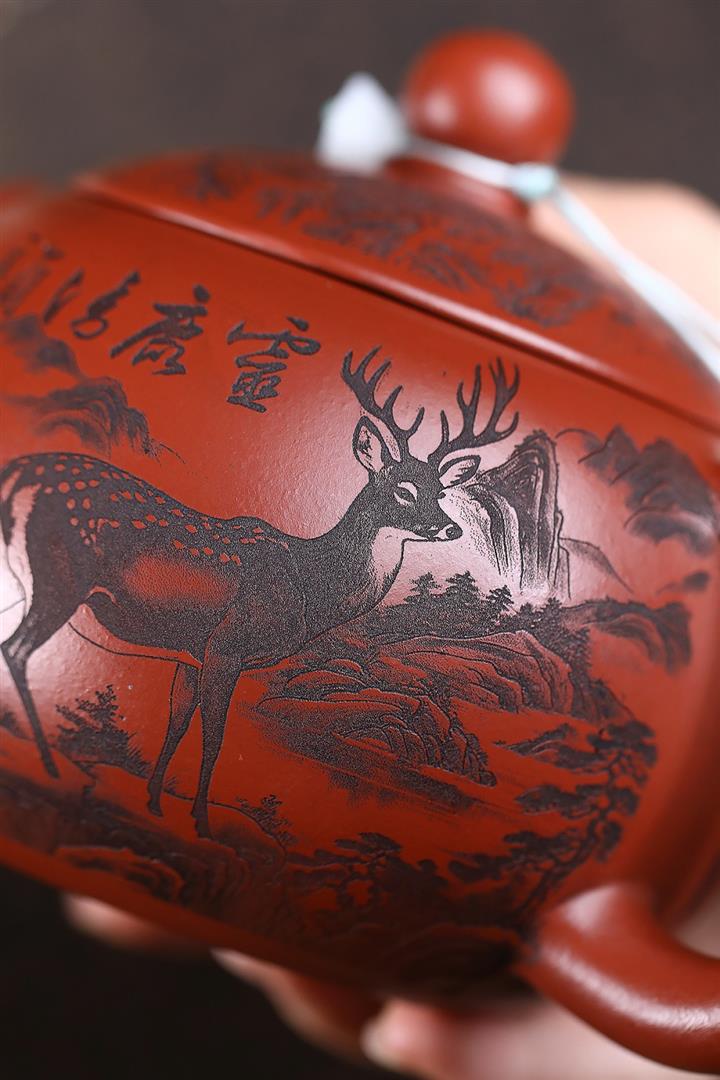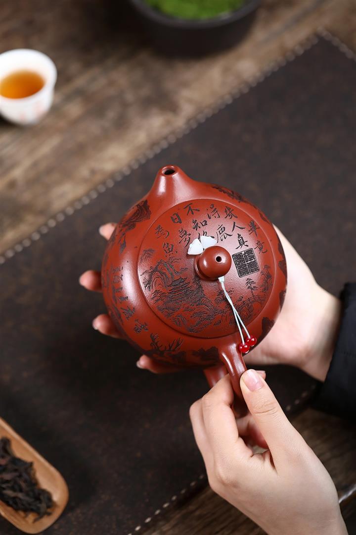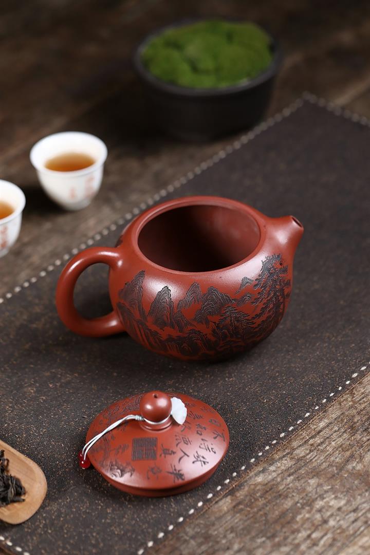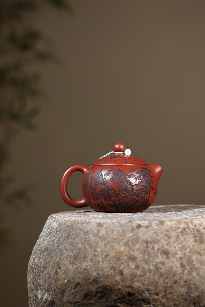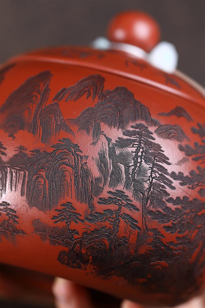 原礦龍骨金砂柴燒手工刻梅周盤茶壺POT6642